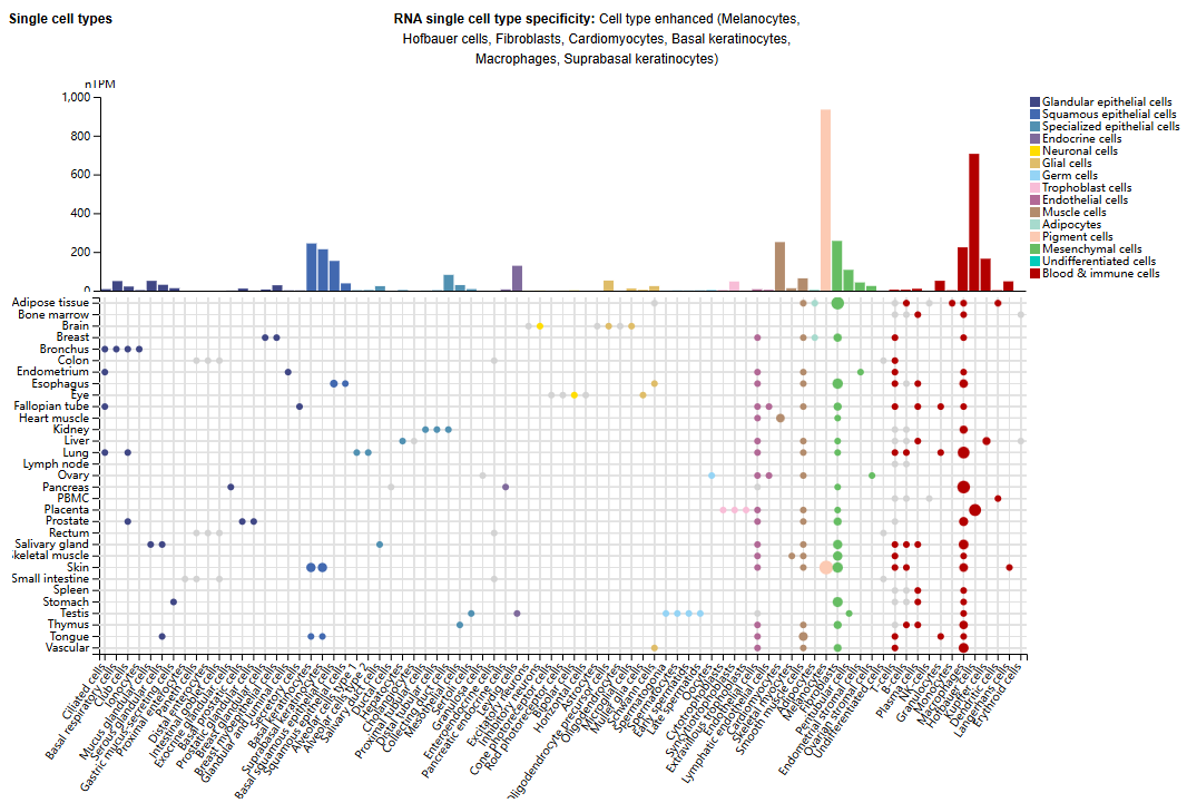 GPNMB主要表达在黑素细胞、霍巴特细胞、成纤维细胞、心肌细胞、基底角质细胞、巨噬细胞、超基底角质细胞中。在枢神经系统(CNS)中的小胶质细胞以及免疫系统中的MΦ、DCs和MDSCs中表达。在白细胞中,GPNMB主要由CD14+单核细胞和表皮LCs(一种未成熟DC类型)表达。